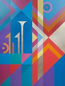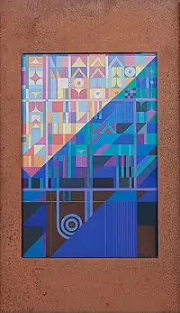 - 1965-67 Schulhaus Gutschick,温特图尔[10] - 1965,象征花园,橡木浮雕(中庭底层),1967 壁画(外部入口)