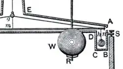 而使扭秤旋转的力非常小,大约N[12],大约是小球质量的1⁄50,000,000,卡文迪什的设备的灵敏度在当时是非常高的[13]。 为了防止空气流动和温度变化带来的测量误差,卡文迪什把整个装置放在他住宅内的一个小蓬里,用长2英尺(0.61)、宽10英尺(3.0)、高10英尺(3.0)的木盒子里。通过小蓬上的两个洞,卡文迪什用望远镜观察扭秤的运动。木棒的位置变化大约0.16英寸(4.1)[14]。卡文迪什通过木棒末端的游标卡尺对微小转动进行测量,精度超过百分之一英寸[15]。卡文迪什实验的测量精度在1895年才被查理士·凡而儂·波伊斯的实验超过。那时,卡文迪什的扭秤法成了测量万有引力常数的主流方法,许多当代实验方法也从扭秤法衍生而来。这也是卡文迪什做的实验现在被称为“卡文迪什实验”的原因[16]。