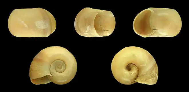 ![]() 印度扁卷螺的五個視圖 |