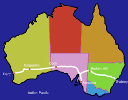 | 途经 | 南威尔士西部干线 布罗肯希尔线 水晶溪-布罗肯希尔线 阿德莱德-奥古斯塔港线 澳大利亚纵贯线 东金矿铁路 西澳大利亚东部干线 | ||
