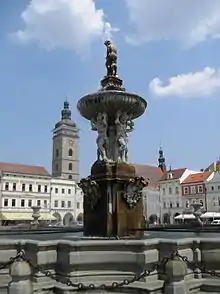 16世纪和17世纪,随着捷克布杰约维采人口不断增长,居民和工商业需要的供水量也按比例增加。1716年,市议会决定在广场中间兴建喷泉,然后将水流向某些街道,同时具备实用以及美化城市的功能。