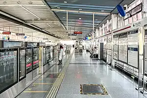 本站的两个站厅分别位于双桥路东西两侧,东站厅内设有自動體外心臟去顫器