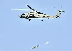 反潛直升機是在航空母艦、驅逐艦、護衛艦等中大型艦艇上起飛和降落,專門負責攻擊敵方潛艇和中小型軍艦的一種直升機。反潛直升機的武器一般有反艦飛彈、魚雷和深水炸彈等武器,依靠直升機自身的雷達和聲吶探測系統或母艦上的雷達系統探測潛艇,是軍艦消除水下危險的重要武器。