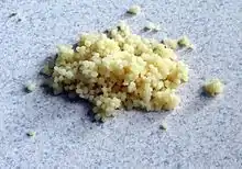 - 撒上干面粉,使之分成小米大小的颗粒,大的颗粒要打碎,