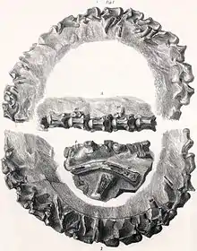 | 古杯蛇(P. maghrebianus)的脊椎骨化石,發現於摩洛哥胡里卜蓋 | |