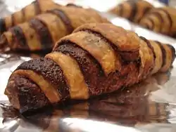 另一種可頌餅乾呈卷狀,特別的是,它們在拿去焗之前會先切成一塊塊[4]。