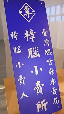 1898年,台灣總督府為達到台灣財政獨立的目標,因此先後將鸦片、食盐、樟腦列入專賣項目,以壟斷外銷市場。[5]:71次年頒布「台灣樟腦局官制」,規定該局負責樟腦與樟腦油的收納、買賣、檢查及製造等相關業務,並於台北、新竹、苗栗、台中、林杞埔、羅東等地設置樟腦局。1900年將各樟腦局統整,設置台灣樟腦局於台北,並將其他五處改制成支局。1901年台灣總督府基於各專賣事業獨立運作,事無統一,故設置臺灣總督府專賣局,統合管理各項專賣事業,並由民政長官兼任專賣局局長,其下設腦務課,負責樟腦及樟腦油的製造特許、收納、販賣等業務。[7]:33-38