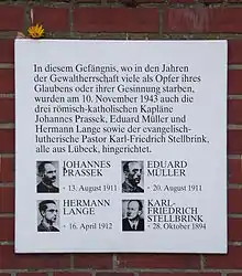 吕贝克殉道士(Lübecker Märtyrer)三位天主教神父:約翰內斯·普拉塞克、赫尔曼·朗格、愛德華·穆勒,和一位新教牧师卡尔·弗里德里希·施泰尔布林克,他们于1943年11月10日在汉堡被斩首。