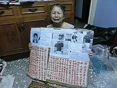 ![]() 當年吳蔡美香在街頭尋女的看板 | |