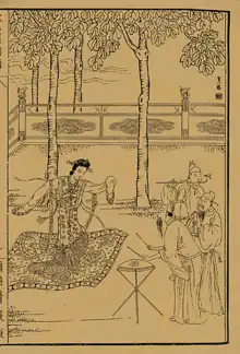 唐玄宗返長安後,一日夢中相見貴妃,後為梧桐雨聲驚醒,追憶往事,不勝惆悵之至。此折為全劇感情上的高潮。