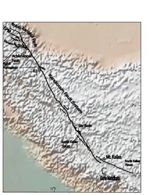 喀喇昆仑断层是喜马拉雅区域一套斜滑断层系统。沿着断层的滑动加速了喜马拉雅山弧的放射状扩张、[2]帕米尔高原的向北缩进[3]:369–378和青藏高原的向东挤压。[4][5]:428–447以目前的板块运动计算,印度洋板块和欧亚板块的汇聚在喜马拉雅-帕米尔地区西部可达44±5mm/年,东喜马拉雅地区达50±2mm/年。[6]:425–478