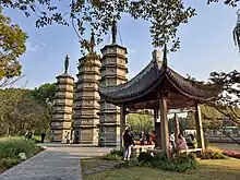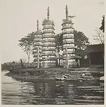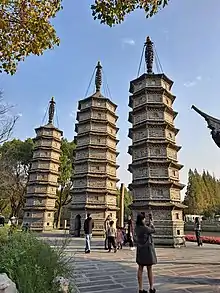 文革期间(1971年)三塔被拆除造水泥厂,塔砖一部分用于修人民广场。1999年拆水泥厂在原址重建三塔。