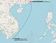 嘉娜馬士基號1975年5月3-4日的行駛路線