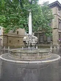 广场中心的四海豚喷泉为巴洛克风格,1929年被列为法国历史古迹。