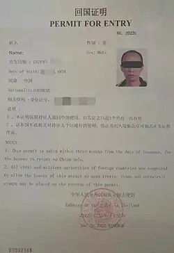 1. This permit is valid within three months from the date of issuance, for the bearer to return to China only.