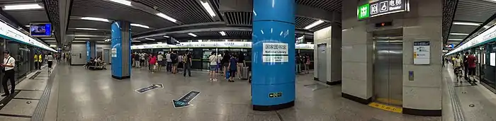 16号线站台为岛式站台,位于国家图书馆总馆南区南侧地底。