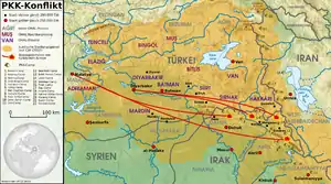 ![]() 土耳其空襲庫爾德工人黨據點示意圖 | |||||||