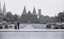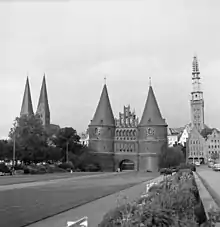 吕贝克的教堂尖顶,前方的是圣彼得教堂,后面的属于圣玛丽亚教堂