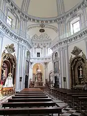 这座建筑建于18世纪,是多次扩建和改建的结果,最初的小堂,由马拉加贵族布埃纳维斯塔伯爵安东尼奥·托马斯·格雷罗·科罗纳多·萨帕塔 (Antonio Tomás Guerrero Coronado y Zapata) 委托建造。[1][2]1720年3月3日,在高纳街(Calle Gaona)旁的坎特罗斯广场(Plaza de los Canteros)铺设第一块石头,十年后完成了这项工程。[1] 从这时起,请求入住小堂的修会有很多,但伯爵一一拒绝,最后在圣斐理伯内里会要求入住时,伯爵欣然同意。1738年11月11日,加斯帕尔·德·莫利纳(Gaspar de Molina)枢机发函批准该修会入住小堂的请求。次年7月初,布埃纳维斯塔伯爵将教堂交给斐理伯内里会神父,包括地上小堂和地下小堂、以及位于旁边的房子,祭衣间、众多装饰、雕塑、绘画,以及位于周围街道上的几座房屋。他将地下小堂的使用权交给耶稣会,而所有权仍归斐理伯会。1739年7月11日,从主教座堂到小堂进行了一次游行,善会、堂区和宗教团体参加了游行。一天后,在小堂举行了第一次正式弥撒。