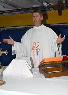 身着哥特式圣衣正在做弥撒的司铎(看不到下面,所以也有可能是欧洲式)