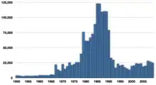 自1950到2009年地中海竹筴魚的商業捕獲量[1]