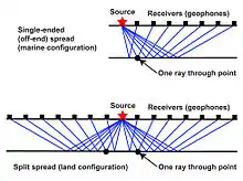 檢波器廣被反射地震學應用,記錄地下地質構造反射的能量波,主要是由地球表面的垂直運動組成。但是地滾波也有的垂直運動,且其信號比反射波強,可以消除較弱的反射波。若使用檢波器列陣通並調諧其到波長與地滾波長相符,可以衰減主要噪聲信號並增強較弱的數據信號。 模擬地震檢波器是被設計用來檢測很遠的震動,因此是一種非常敏感的設備。但是這些小信號可能會被本地來源的較大信號淹沒。通過對比在檢波器列陣中多個地震檢波器的信號,可以加强遠來反射地震波信號。本地來源的信號僅能在一個或幾個地震檢波器上記錄可對比,因此可被消除。在陣列中的所有檢波器都有記錄的小信號可以歸因於遙遠的反射地震波事件。