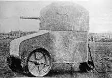1915年,人们还尝试研制了一种具有强大装甲和武器装备的车辆。这种车辆安装在农用拖拉机的越野底盘上,配备具有粗糙胎面的大轮,例如奥布里奥-加贝“堡垒”。该车由电力驱动(配有供电电缆),并配备一门37毫米海军大炮,但事实证明此种设计仍然缺乏实用性。[27]