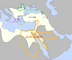 馬哈茂德二世在遏制國內不滿的同時,堅決實施這些改革,但後來他與埃及的穆罕默德·阿里的關係卻成為牽涉至其他國家的嚴重問題。[16]穆罕默德·阿里要求其在敘利亞擁有主權,以換取他對鎮壓希臘起義的貢獻(儘管最終並未能鎮壓之)。馬哈茂德二世拒絕這個要求,並認為穆罕默德·阿里將會因擁有敘利亞而有了入侵西安納托利亞的風險。[16]馬哈茂德二世被迫尋求俄羅斯帝國的支持,由於英法的相繼干涉,1833年雙方簽訂了屈塔希亞公約,埃及軍隊承諾,鄂圖曼方只要將敘利亞移交給埃及,他便即刻撤出。[16]然而,鄂圖曼帝國與埃及在敘利亞的衝突仍在並未停止,1839年6月,敘利亞又發生了一場衝突,埃及在此次戰役擊敗了鄂圖曼軍隊。[16]馬哈茂德二世於1839年7月1日,在該消息傳出之前便駕崩。[16]