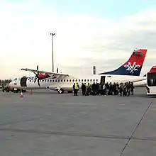 塞爾維亞航空ATR 72在貝爾格萊德尼古拉·特斯拉機場(攝於2015年)