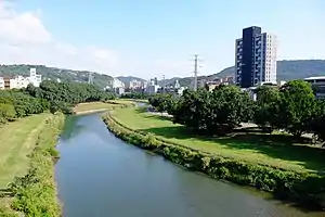由雙溪橋向上游方向看外雙溪與左岸的兒童新樂園。