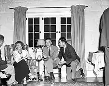 二战爆发后,西印公司的老板决定转向战争方面的生意,于1943年关闭了公司,多萝西因此失业[19]。1943年3月,三位来自加州的神秘人物找到她,希望在圣菲建一个新的办公室[20]。多萝西对其中一个人印象非常深刻,后来更这样写道: