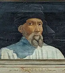 ![]() Donatello, in a 16th-century portrait by an unknown artist[1] (The former attribution to Paolo Uccello is no longer accepted.) | |