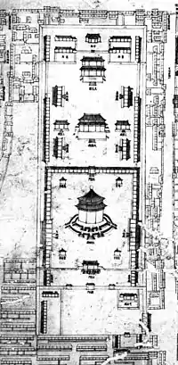 - 飨祉亭:位于大光明殿的西南侧。宣恩亭和飨祉亭清朝改建为钟鼓楼[1]
