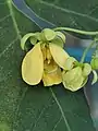 四葉黃槐不僅葉子結構特殊,花朵結構尤其花蕊部分亦是特殊。春季盛花期一串串密生於細枝頂的黃色花群令人驚艷。