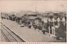 日治時期官線大莆林驛(中)與新高製糖大莆林驛(右後),為二棟各自獨立建築。