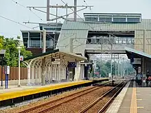 大林車站第一月台及第二(2A)月台,與改建成跨站式站房的巨大跨線天橋結構。