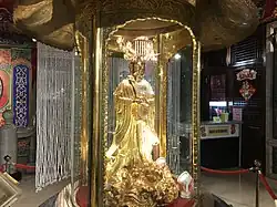 完成後,大甲金媽祖外貌為頭戴鳳冠、手捧如意,外袍雕鳳、披風雕龍,高一百卅公分的本體立於海濤之上[2]。原先廟方想在2005年元宵節在媽祖文化廳揭幕,但消息提前曝光[3]。該年春節,吸引數十萬名香客前往觀賞號稱全臺灣最大的黃金媽祖,人數比去年增加一倍以上[6]。