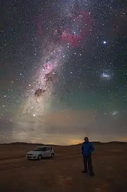 南半球所見的銀河,大麥哲倫星系和小麥哲倫星系位於右方