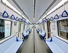 11号线采用B型车,列车最高运行速度为80km/h,初期平均旅行速度为32km/h,近期及远期平均旅行速度为36km/h。初期、近期、远期均采用6辆编组,列车总长118.12米,编组形式为