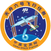 天舟六号任务标识外围艺术化处理为货运飞船对接口轮廓,更具科技感;空间站设计使用不同角度来更好地表现和突出当前任务飞船状态,并用黄色轮廓突出当前任务天舟六号飞船对接位置;空间站白色配色使其在深蓝色背景中脱颖而出;任务飞船型号数字字体“6”设计彰显了现代感、科技感,寓意速度和轨迹。[28]