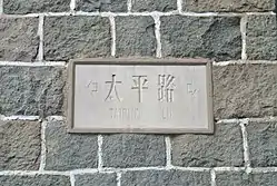 ![]() 太平路老路牌,位于山东矿业公司旧址墙面 | ||||||||||