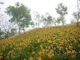 ![]() 太麻里山山腰遍布人為栽種的金針花 | |