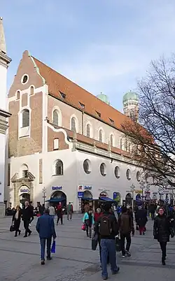该堂原为哥特风格,1618年至1621年由维特施密特改建为巴洛克风格,由汉斯·克鲁珀设计。修道院建筑现在被用作慕尼黑警察总部的办公室。