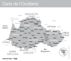 法國的南半部:普罗旺斯、德龙-维瓦赖、奥弗涅、利穆赞、吉耶讷、加斯科涅、南多菲内及朗格多克。法语现在是当地的主要语言,同时奥克语不被认同为官方语言。