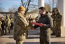 ![]() The commander of the "Kherson" OGT", Brigadier General O.G. Tarnavskyi, receives the Order of Bohdan Khmelnytskyi, 1st degree, for the liberation of the right bank of the Kherson region, Kherson, November 14, 2022. | |