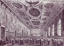 1797年5月,拿破仑侵略前,在无法抵御法军的情况下,威尼斯大议会接受了末任总督卢多维科·马宁的辞职,并且投票解散了威尼斯共和国,将权力交给一个临时政府。[2][7]