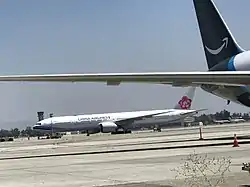 中華航空波音777-300ER剛抵達安大略機場,此為首條及唯一通往亞洲的客運航班