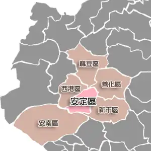 ![]() 安定區位於臺南市內西南方 | ||