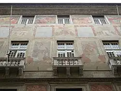 Particolare di uno degli affreschi della facciata