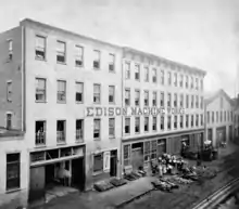 1884年,一直在巴黎监督设施的爱迪生公司经理,查尔斯·巴彻勒,被带回美国,被安排管理位于纽约市的爱迪生机械厂的制造部门,并要求将特斯拉也带到美国。[49]1884年6月,特斯拉移民[50]并几乎立即开始在曼哈顿下东区的机械厂工作,这是一个拥挤的车间,有几百名机械师、工人、管理人员和20名“现场工程师”,正在努力完成在该城市建设大型电力设施的任务。[51]与在巴黎时一样,特斯拉正在努力排除设施的故障并改进发电机。[52] 历史学家 W·伯纳德·卡尔森指出,特斯拉可能只见过公司创始人托马斯·爱迪生几次。[51] 其中一次在特斯拉的自传中提到,在熬夜修理俄勒冈号海轮上损坏的发电机后,他遇到巴彻勒和爱迪生,他们调侃说“巴黎人”夜不归宿。当特斯拉告诉他们,他整夜都在修理俄勒冈号时,爱迪生对巴彻勒说:“这是个难以置信的好人”。[48]在给特斯拉的一个项目中,有一项是开发基于弧光灯的街道照明系统。[53][54] 弧光灯是最受欢迎的街道照明类型,但它需要高电压,与爱迪生的低压白炽灯系统不兼容,导致该公司在一些城市失去合同。特斯拉的设计从未投入生产,可能是因为白炽灯的技术改进,也可能是因为爱迪生与一家电弧照明公司达成的安装协议。[55]